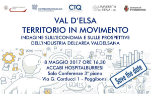 Il prossimo lunedì 8 Maggio alle ore 16,30 si terrà incontro “Val d’Elsa territorio in movimento – Indagine sull’economia e sulle prospettive dell’industria dell’area valdelsana” presso l’ACCABI HOSPITAL BURRESI a Poggibonsi.