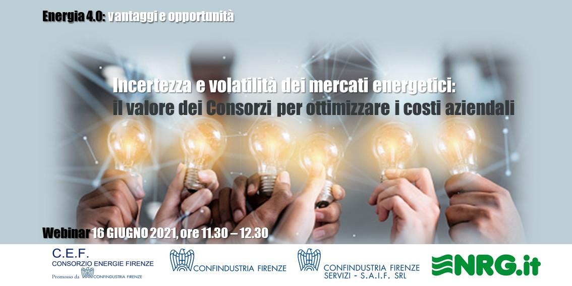 Il Consorzio Energie Firenze, in collaborazione con NRG.it, società E.S.Co. da anni consulente tecnico dal Consorzio, ha organizzato questo Webinar con l’obiettivo di illustrare alle aziende come funziona il mercato elettrico, quali sono i driver che influenzano le quotazioni (elezioni americane, annunci sulla scoperta di vaccini al Covid19, ribasso delle stime OPEC sulla domanda 2021, partenza del gasdotto TAP, temperature stagionali, etc.), le tendenze dei prezzi in atto e dare un aggiornamento sull’andamento dei principali mercati energetici attualmente in forte rialzo.