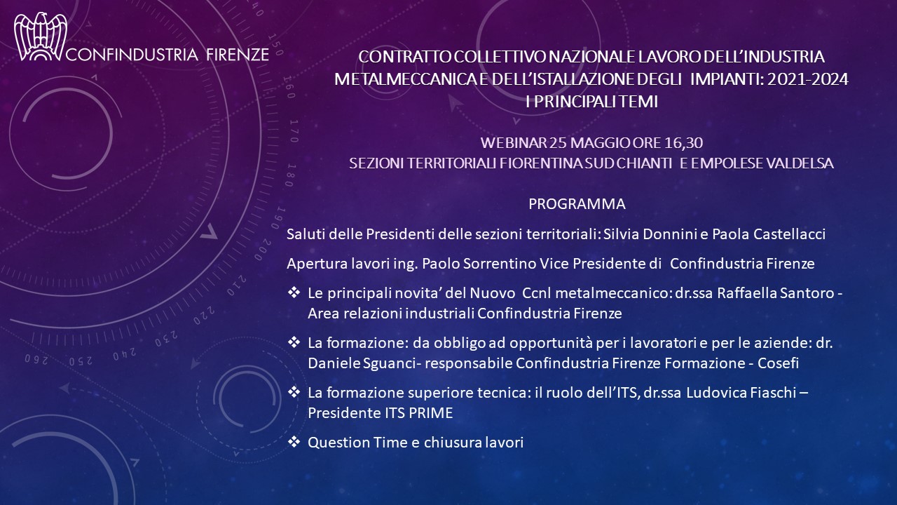 Si conclude oggi il primo ciclo di Webinar dedicati al rinnovo del Contratto Collettivo Nazionale Lavoro dell’industria metalmeccanica.