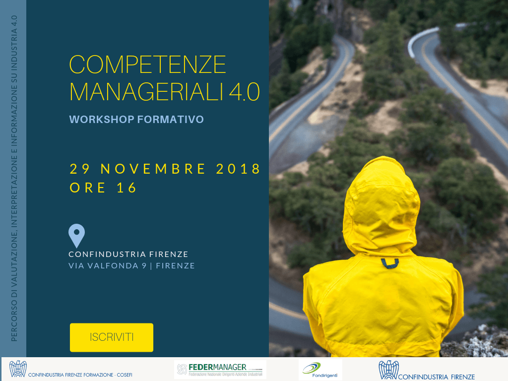 Lo scopo del workshop è analizzare le competenze dei manager nell’Industria 4.0 attraverso la presentazione di uno Studio su management e Innovazione dei modelli di business dell’Osservatorio mercato del lavoro e competenze manageriali