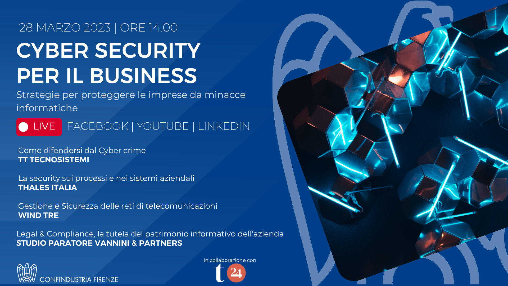 L’incontro grazie agli esperti presenti vuole indicare le azioni da intraprendere per individuare tutte le possibili soluzioni per prepararsi e difendersi dagli attacchi informatici. Interverranno TT TECNOSISTEMI, THALES ITALIA,WIND TRE e STUDIO PARATORE VANNINI & PARTNERS