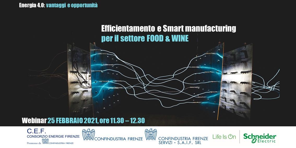 Efficientamento e Smart manufacturing per il settore FOOD & WINE è il quinto Webinar del Ciclo formativo (per vedere tutto il percorso formativo CLICCA QUI) organizzato insieme agli esperti di Schneider Electric. Ne seguiranno altri cinque sullo stesso tema ma specifici per altri settori ritenuti tra i più interessanti nel territorio fiorentino.