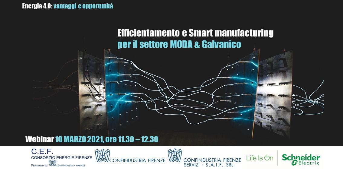 Efficientamento e Smart manufacturing per il settore MODA & Galvanico è il sesto Webinar del Ciclo “Energia 4.0: vantaggi e opportunità” organizzato dal Consorzio Energie Firenze, in collaborazione con Confindustria Firenze, Confindustria Firenze Servizi – SAIF Srl insieme agli esperti di Schneider Electric. Ne seguiranno altri sul tema dell’efficientamento e Smart manufacturing, ma specifici per altri settori produttivi ritenuti tra i più interessanti nel territorio fiorentino.