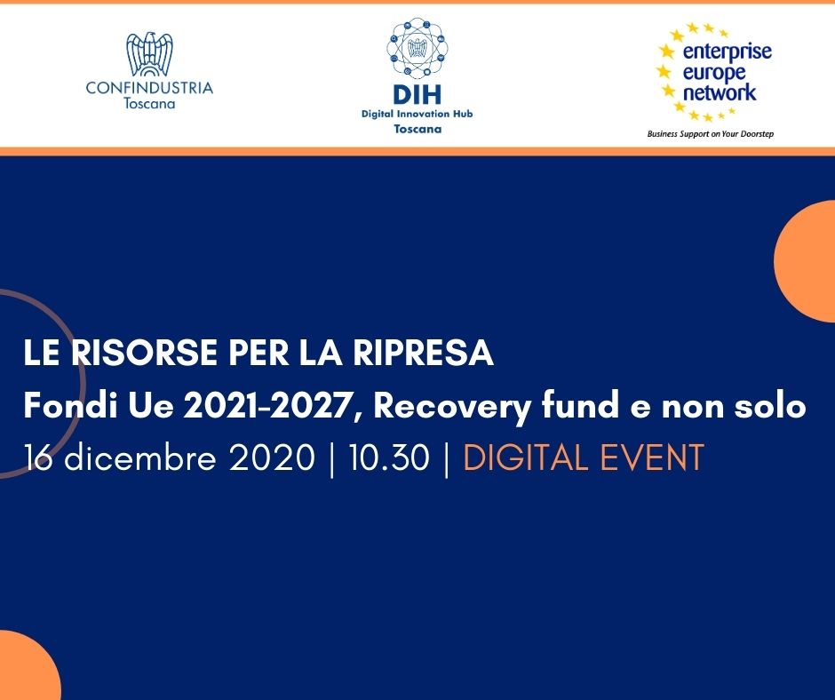 Confindustria Toscana e Digital Innovation Hub Toscana, con la partecipazione di Regione Toscana e Confindustria, organizzano un webinar per porre le basi di una conoscenza diffusa e appropriata delle strategie e delle risorse europee in fase di implementazione, con l’obiettivo di definire progetti rispondenti alle indicazioni e caratteristiche dei programmi ed effettivamente utili per la ripresa e la crescita delle imprese e del territorio.