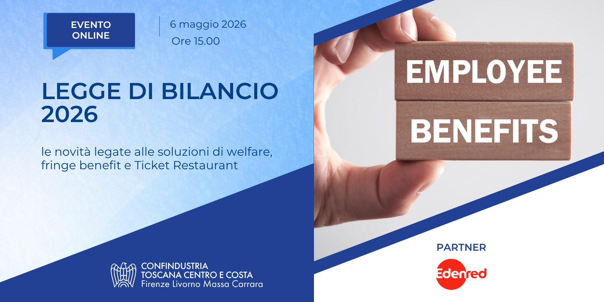 L’incontro, organizzato con Confindustria Toscana Centro e Costa, offrirà una guida chiara per trasformare i nuovi benefici fiscali in un’opportunità concreta: dalla riduzione del cuneo fiscale alla valorizzazione del benessere dei dipendenti, con strumenti semplici, flessibili e vantaggiosi.