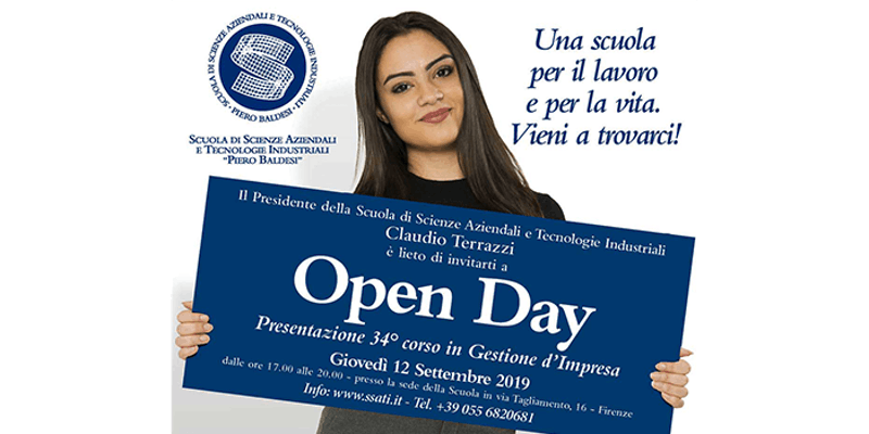 Il 12 settembre, a partire dalle 17.00 presso la sede SSATI in via Tagliamento-16 a Firenze, si terrà l’Open Day della Scuola di Scienze Aziendali e Tecnologie Industriali Piero Baldesi, un’occasione per scoprire tutte le specializzazioni che mette a disposizione il corso in Gestione d’Impresa, e per sentire le testimonianze degli ex-studenti della Scuola e dei professori che ogni giorno preparano i lavoratori del domani!