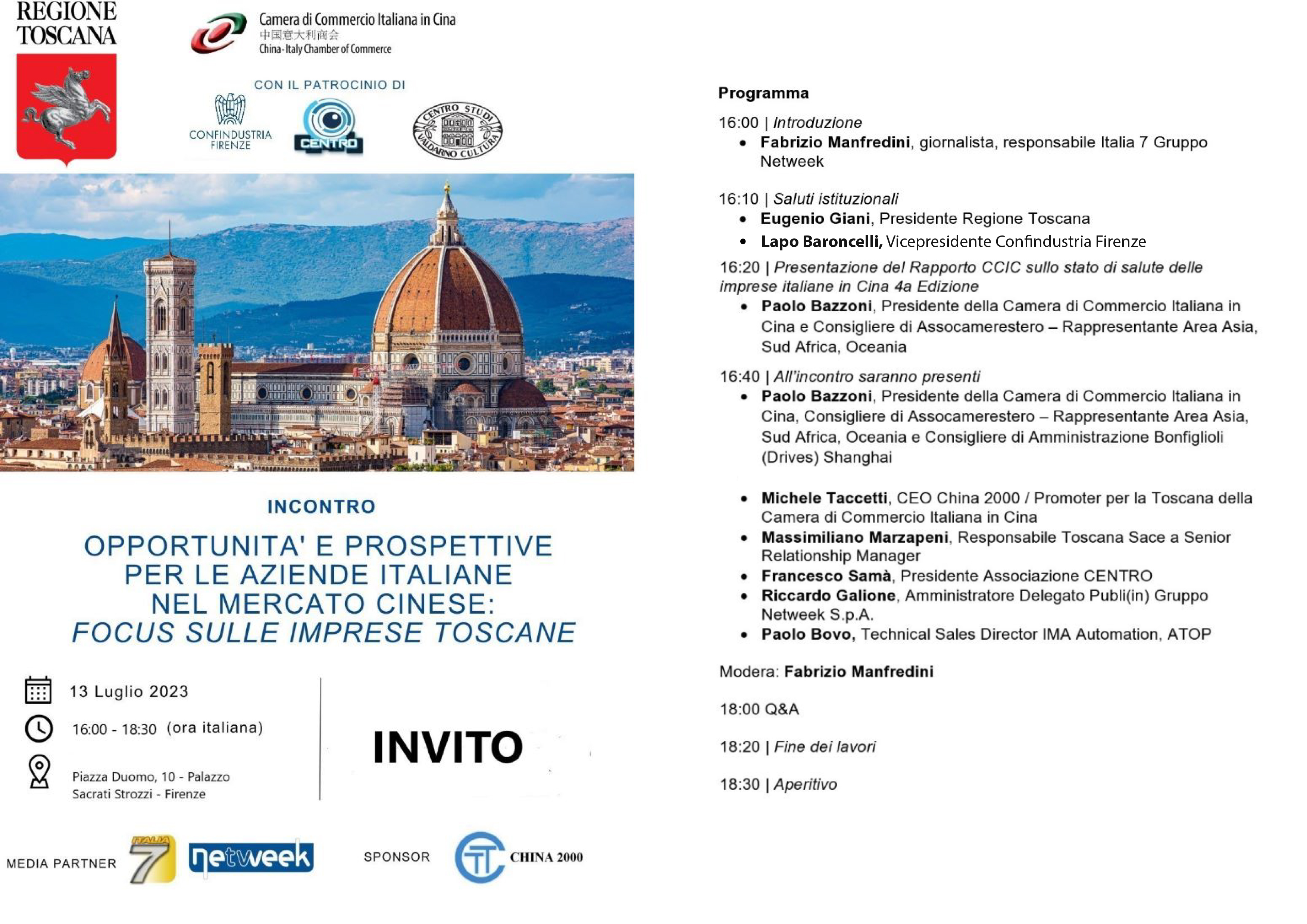 - Michele Taccetti, CEO China 2000 / Promoter per la Toscana della Camera di Commercio Italiana in Cina