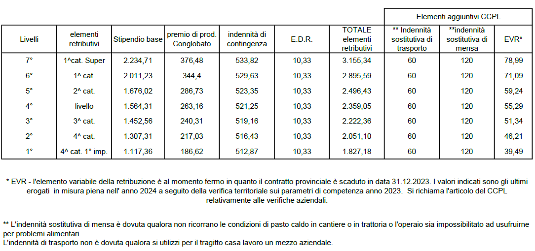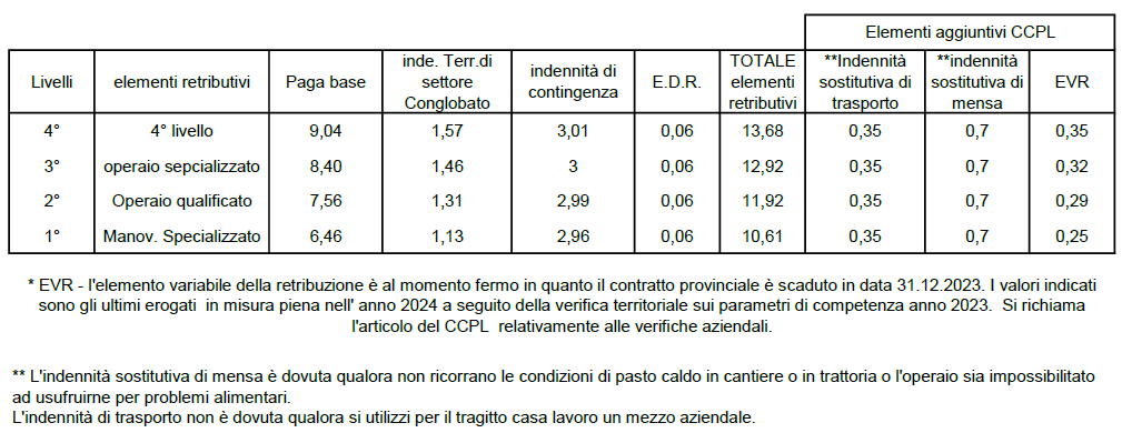 La tabella seguente riporta la retribuzione oraria degli Operai Edili della Provincia di Firenze aggiornata a marzo 2026: